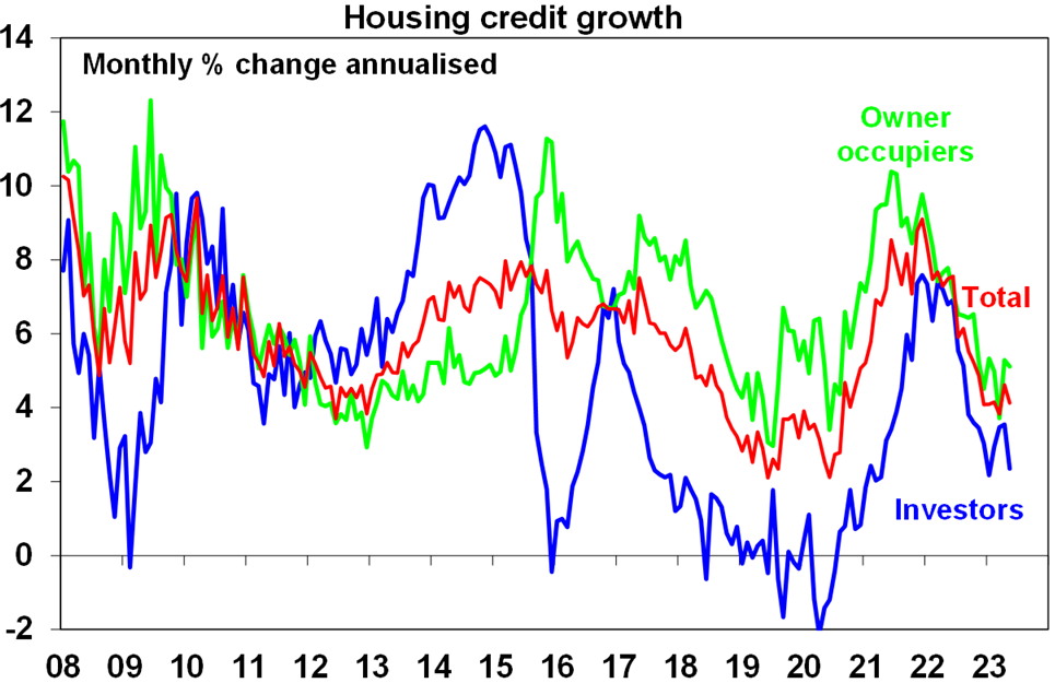 Credit growth slowed a bit in May reflecting slower growth in business credit and a slight slowing in housing credit growth going to investors.
