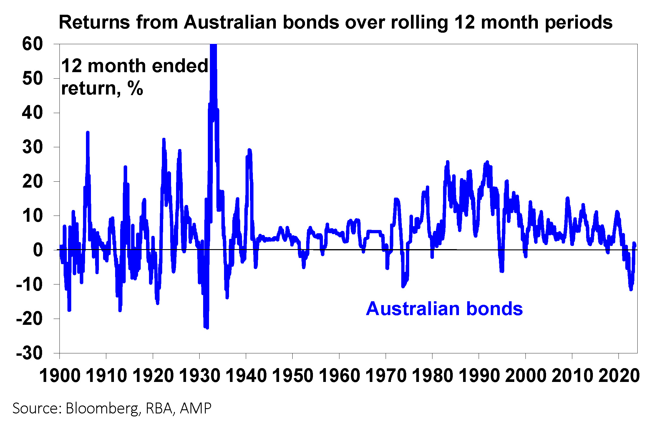 After seeing their worst loss in decades in 2021-22 as bond yields surged resulting in big capital losses, bond returns have stabilised over the last 12 months as bond yields stopped rising with higher yields helping.
