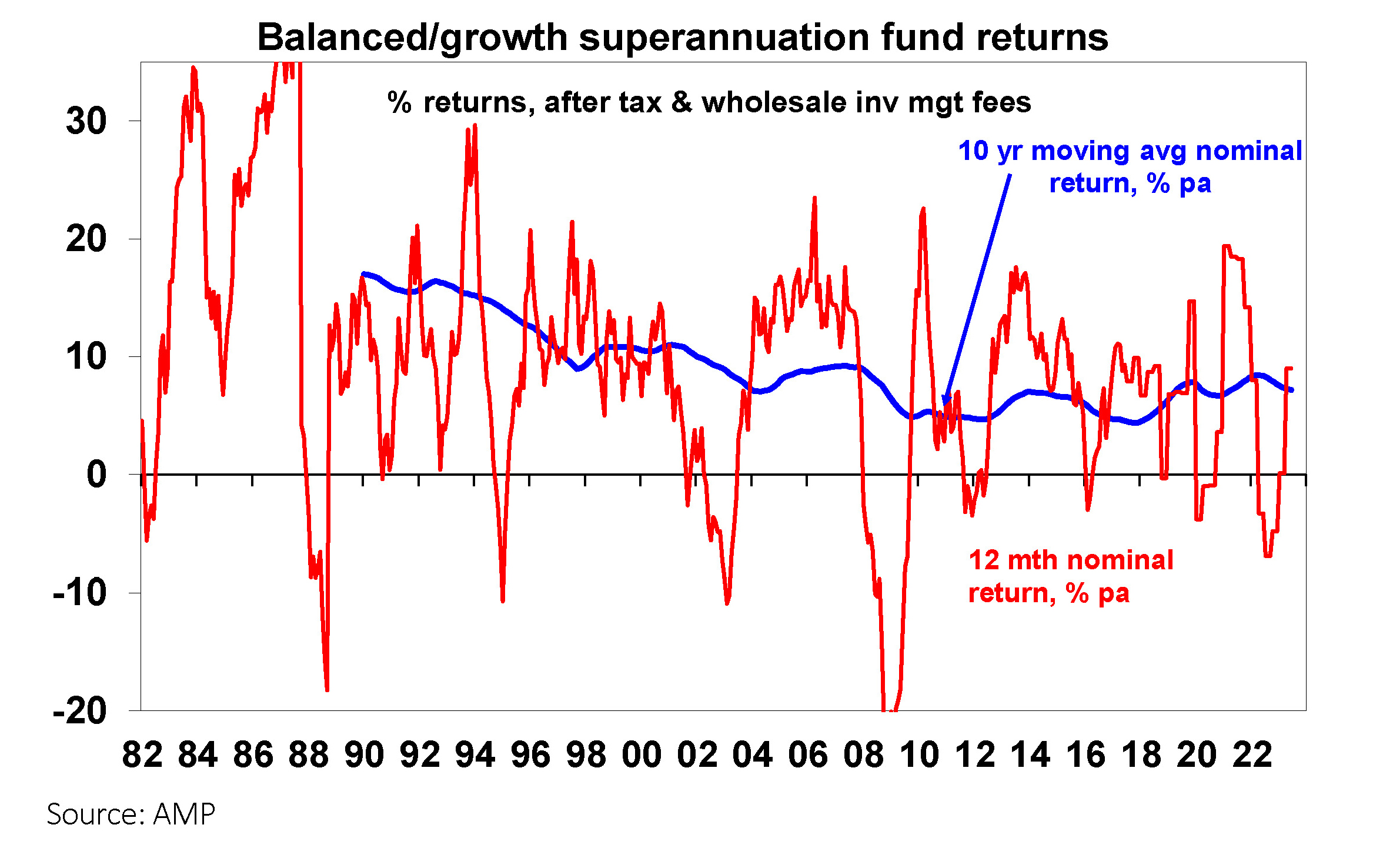 Overall balanced growth super returns are likely to be reasonable – but more like 6 to 7% than the 9% or so seen over the last financial year.