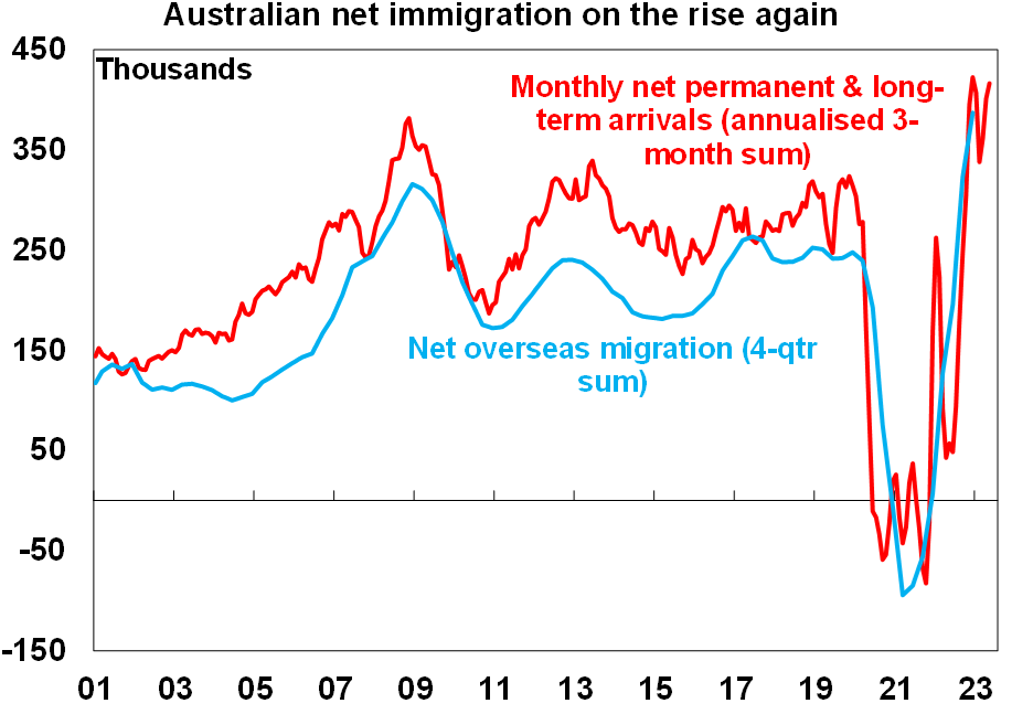 On interest rates, it’s noteworthy that Governor Lowe softened the RBA’s tightening bias in the last week, noting that “It remains to be determined whether monetary policy has more work to do. It is possible that some further tightening will be required to return inflation to target within a reasonable timeframe” but “this will depend on how the economy and inflation evolve”. The RBA may just be waiting for more information and revised forecasts next month but Governor Lowe’s softer language suggests he thinks we may be at or close to top. Given our own assessment that the RBA has already done enough, it’s hard to argue with his relaxation in the tightening bias, although I suspect the RBA will still do more given risks on wages and sticky services inflation and Governor Lowe may want to get any further rate hikes out of the way before Michele Bullock takes over in mid-September. Jobs data in the week ahead, inflation data at the end of the month and revised RBA wages growth forecasts will likely be key.