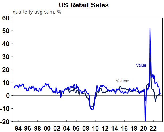 RBA minutes pivot to be a bit less hawkish consistent with recent messaging from Governor Lowe, but after the strong June jobs report another rate hike still looks likely in August at this stage. The decline in global inflationary pressure is a positive for Australia too and adds to the likelihood that the RBA is at or near the top on rates. Interestingly the minutes from the last RBA board meeting leaned a bit less hawkish consistent with Governor Lowe’s softened tightening bias. The minutes reiterated that “some further tightening may be required” given risks around services inflation, wages and productivity but it suggests that the RBA may be starting to pay more attention to rising mortgage interest payments as a share of income which it notes are around a record high, the lags with which monetary policy impacts the economy and the labour market and the risk of the economy slowing more than expected and unemployment rising more than required to return inflation to target (which RBA forecasts put at around 4.5%). This highlights the balancing act the RBA is now undertaking is getting more risky and makes the next RBA board meeting a close call. We remain of the view that the RBA has already done enough and the best option is to pause for an extended period. But the RBA has also indicated it will be looking at the latest labour market, inflation, global economy and household spending data along with updated RBA forecasts at its next meeting. Given ongoing RBA concerns about high services inflation, rising wages growth and weak productivity, the strong jobs data for June with unemployment back down at 3.5% at this stage points to another 0.25% rate hike next month (which is our forecast). Governor Lowe may also want to get any further interest rate hikes out of the way ahead of Michele Bullock taking over in mid-September. But data in the week ahead for inflation and retail sales will be critical.