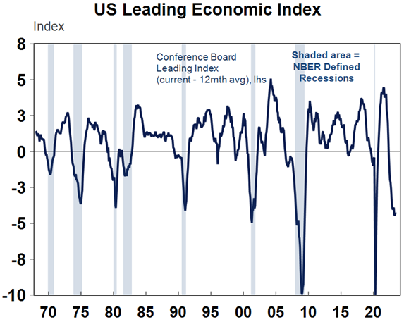 The Conference Board’s US Leading Index fell further in June continuing to point to a high risk of recession.