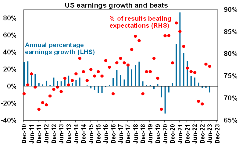 Shares remain at risk of a short-term correction given high recession risks, worries about Chinese growth, the risk of more rate hikes with central banks, including the RBA, remaining wary and the seasonally rougher patch often seen through August to October. But the ongoing fall in global inflation with the promise of a peak in interest rates is consistent with our positive 12-month view on shares and appears to be dominating for now. So, any pull back may be shallow.