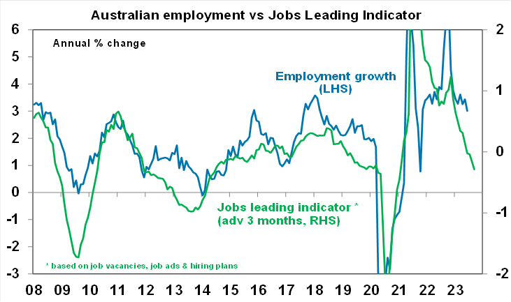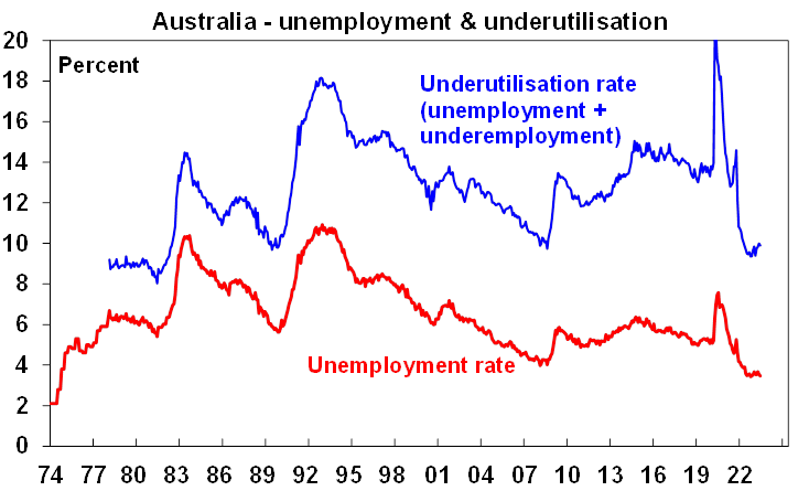 Australian economic events and implicationsAnother strong jobs report in Australia adding to the likelihood of another RBA rate hike. The June jobs data was unambiguously strong with employment up by 32,600 all driven by full time jobs (against economists’ expectations for a 15,000 gain), unemployment back down to 3.5% (and just above its low late last year of 3.4%), underemployment unchanged at a near multi-decade low, hours worked continuing to rise solidly and a record high level of the 15 plus population in employment. This is likely all a bit stronger than the RBA was expecting and as the labour market is something it watches closely adds to the likelihood of another rate hike in August. Of course data for inflation, retail sales in the week ahead and the RBA’s revised forecasts will also impact what the RBA does at its August meeting.