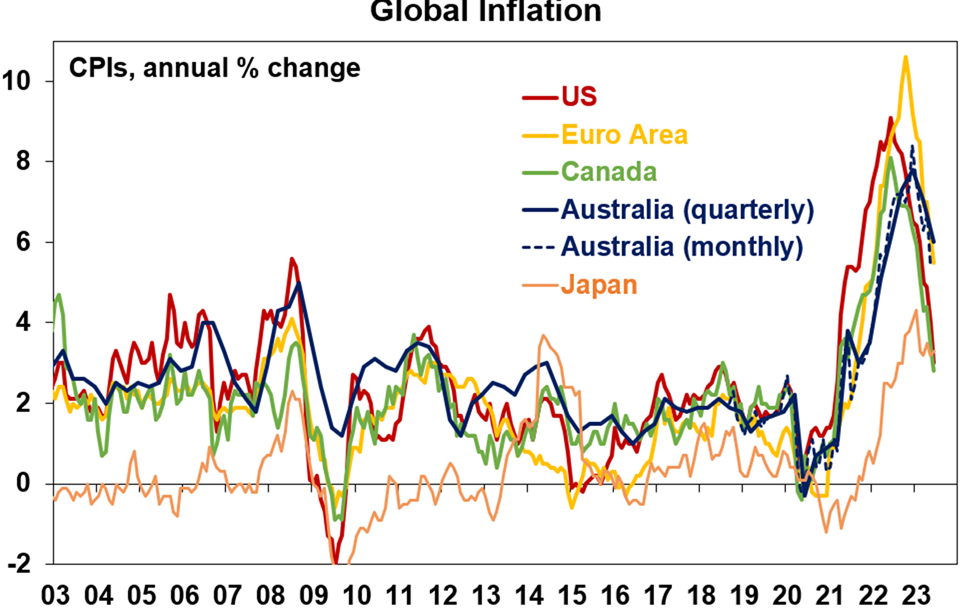 The risk of a short term correction in shares is still high with recession risks remaining high, China growth worries, central banks still at risk of hiking further, the BoJ now edging towards rightening and the seasonal rough patch often seen from August to October. But the ongoing fall in inflation consistent with interest rates being at or near the top and indications that any recession may be mild is consistent with our positive 12-month view on shares and appears to be dominating. So, any pull back may be shallow.