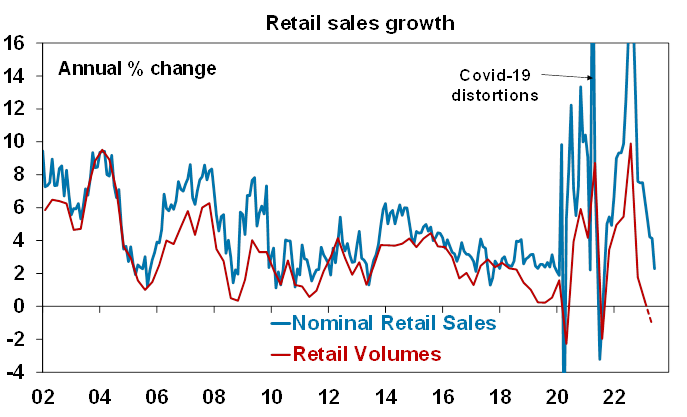 Australian retail sales fell 0.8% in June – rate hikes and cost of living pressures are clearly biting. This followed a stronger than expected rise in May that reflected earlier than normal end of financial year discounting, suggesting spending had been pulled forward which then depressed June as spending was not sustained. This leaves retail sales flat since October and falling in real terms as rate hikes weigh on discretionary consumer spending and this is likely to continue.
