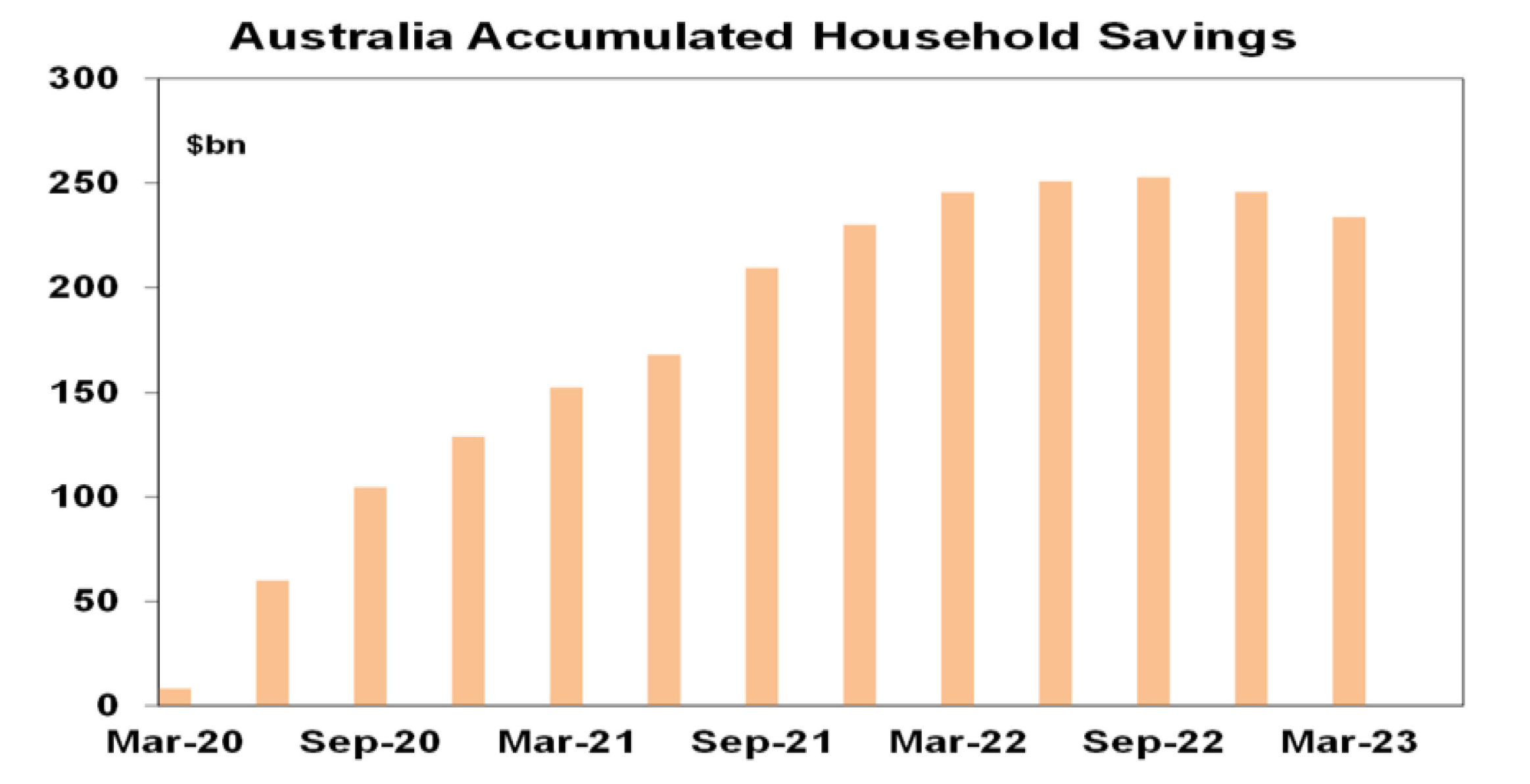 Third, households still have pandemic savings buffersThrough the pandemic people were constrained from spending but most still received an income. The result was that household saving rates rose above normal levels resulting in excess saving. See the next chart. In Australia it has been run down but remains high at around $230bn. My concern has been and remains that it is not distributed equally and that for many younger (25-45 year old) households with high debt levels it has been rundown such that it’s no longer of any support in the face of the surge in interest payments. And for older households they are unlikely to use much of it for spending anyway. Nevertheless, at an average level it is a source of support that wasn’t around prior to past downturns.