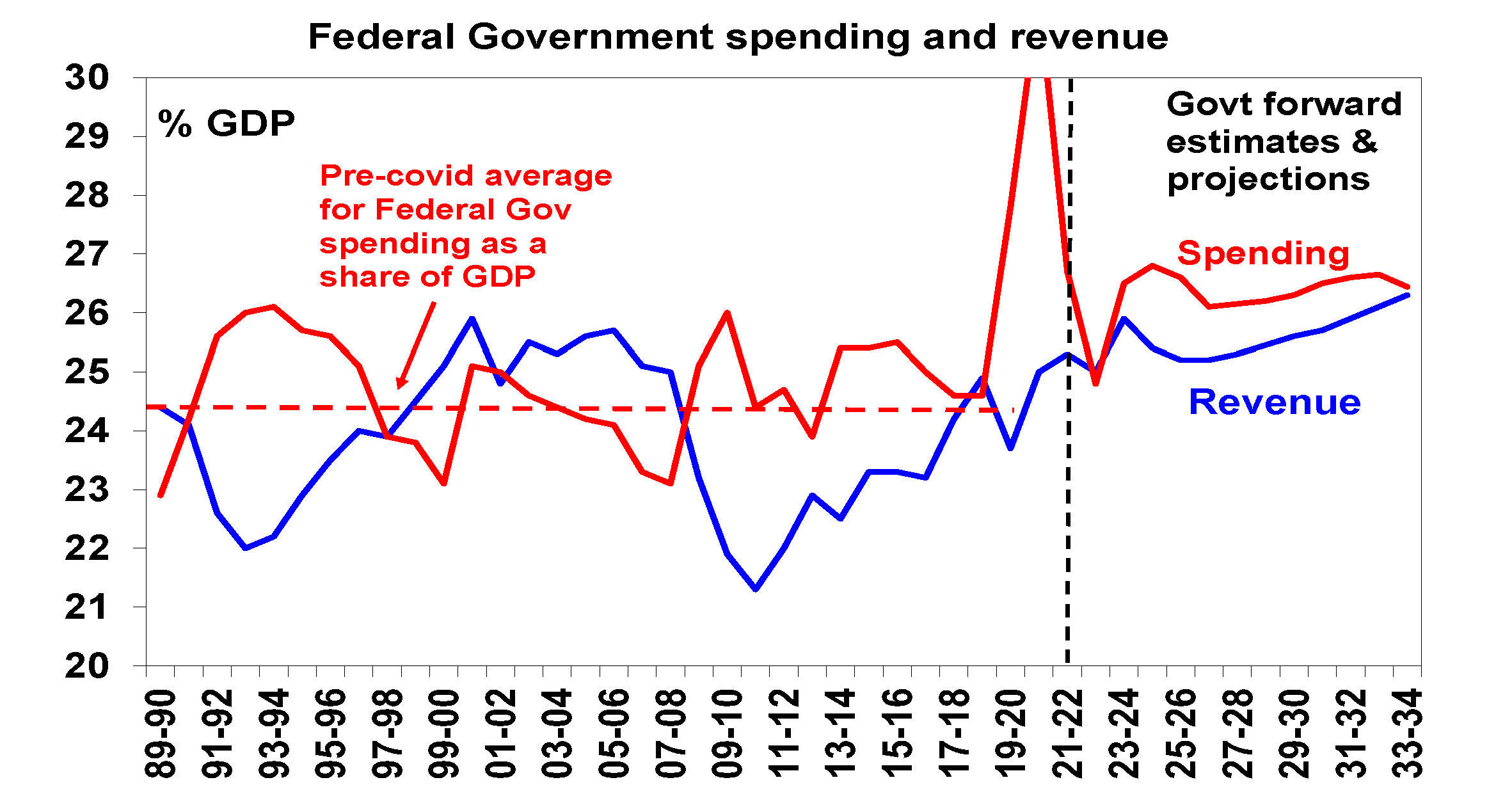 Concluding comment and implications for investorsAustralia is in far better shape than many comparable countries – public debt is relatively low; unemployment is low; and we are less politically polarised and more open to compromise. However, after nearly two decades of policy drift, declining productivity growth is weighing on growth in living standards and sustainable real wages growth. Some boost in productivity is likely as pandemic related distortions drop out and some government measures will help. However, the political will for the sort of economic reforms necessary (particularly around taxation and labour markets) for another 1990s style rebound in productivity growth looks unlikely. This in turn makes the RBA’s job in getting inflation down a little bit harder and will constrain medium term investment returns.