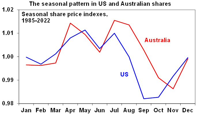 Correction risks remain high. While shares had a nice bounce at the end of August, they failed to break above late July highs and have started to come under pressure again consistent with our view that the risk of a further near-term correction remains significant. The list of threats to share markets in the near term remains long: there is a high risk that the disinflation process could pause and August inflation data in Asia and Europe has highlighted this; many central banks, including the RBA and Bank of Canada in the past week, are warning that they could still raise rates further; the risk of recession remans high; the continuing rebound in oil prices on the back of Saudi and Russian production cuts adds to inflation and recession risks; China’s economy is still at risk with no further policy stimulus; there is a high risk of another US Government shutdown from 1 October if US politicians fail to agree a budget or continuing resolution this month and any resolution is likely to involve tighter US fiscal policy; surging US student loan payments are an additional drag in the US; high bond yields are pressuring share market valuations; geopolitical tensions are continuing with China planning to extent its ban on iPhone use to government agencies and state companies; and the weak seasonal period for shares goes out to October. However, our 12-month view on shares remains positive as inflation is likely to continue to trend down taking pressure off central banks and any recession is likely to be mild.