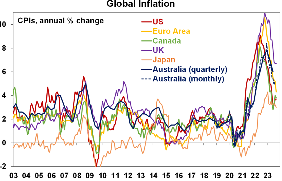 The conflict in Israel presents a dilemma for central banks. On the one hand if it escalates (contrary to the efforts of the US to prevent a “folly” driven by the desire for vengeance by Israel) and drives a further sharp rise in oil and hence petrol prices it will add directly to inflation which could further boost inflation expectations making it even harder to return inflation to target (which is something RBA Governor Bullock highlighted in the last week), unfortunately, the war in Israel providing even more parallels to the high inflation 1970s. On the other hand, when monetary policy is already tight as it is now and household budgets are stretched higher, oil prices will act as a tax on spending and hence damage economic activity adding to the already high risk of recession and ultimately driving lower inflation. Our leaning is more to the latter and so, in the words of Fed Chair Powell, central banks including the RBA should proceed “carefully” and stay in wait and see mode.