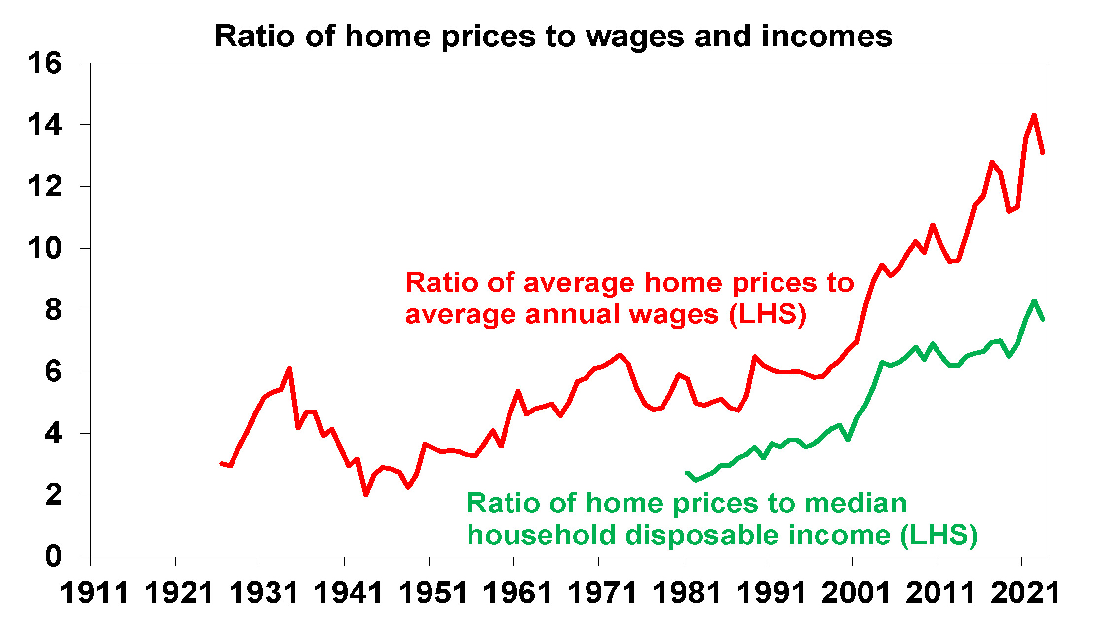 Australian housing remains very expensive on all metrics – home price to income ratios are only just below record highs; they are at the high end of comparable countries; and the time taken to save for a 20% deposit has more than doubled over the last 40 years from less than 5 years to now more than 10.
