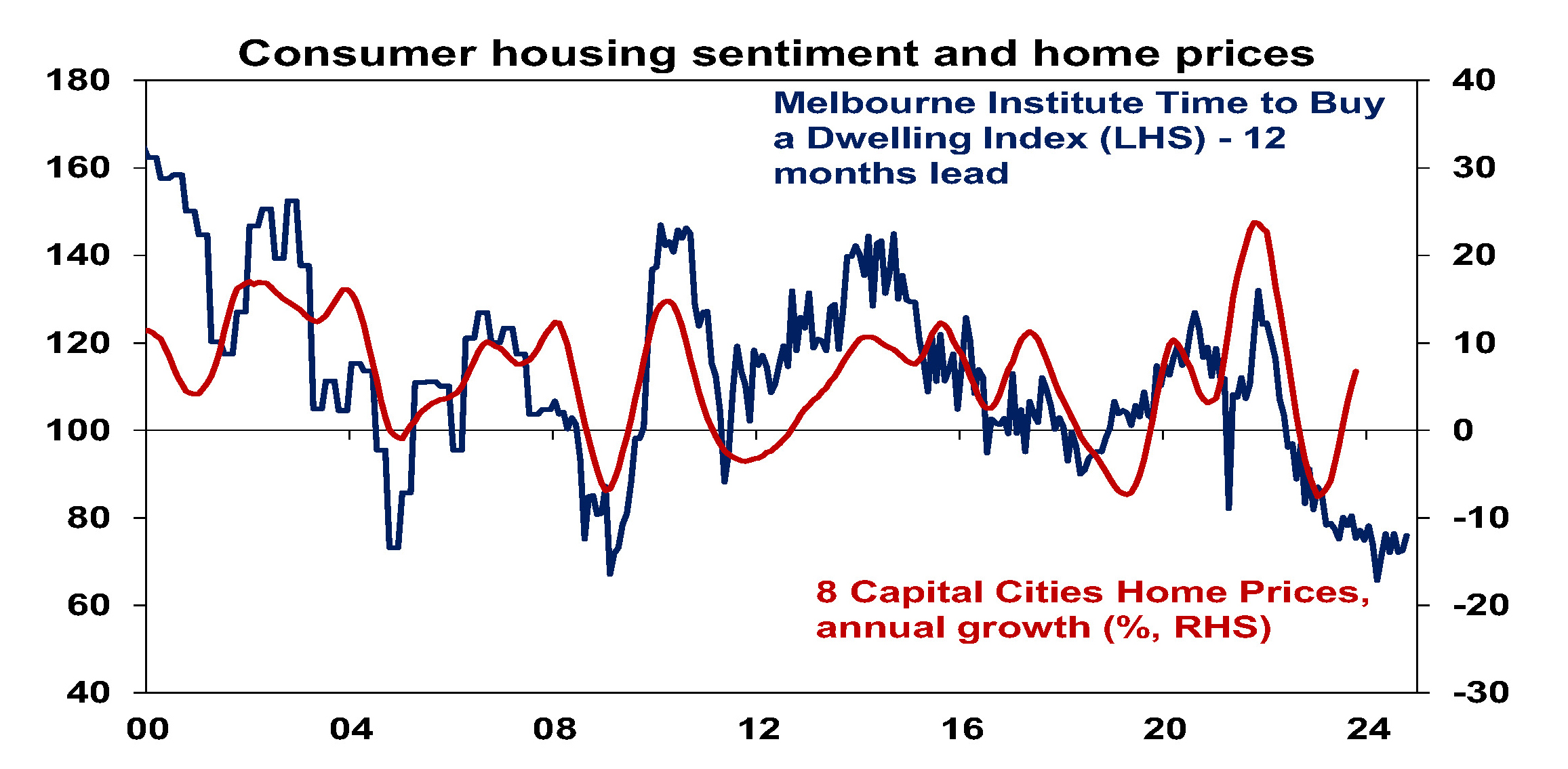 Australians continue to see this as a poor time to buy homes consistent with very depressed levels of consumer confidence generally. This makes the current upswing in home prices unusual as it’s normally accompanied by improved sentiment towards property.