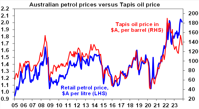 The DP World ports and Optus disruptions in the past two weeks highlight the economy’s vulnerability to what amounts to supply side shocks. Fortunately, both look to have been relatively brief although there is more risk around DP World given strike action, but extended supply shocks would risk adding to inflation pressures. The good news is that the war in Israel has not so far led to global oil supply disruptions and global oil prices are around $US7/barrel lower than just before the Hamas attacks, so based on current oil prices Australian petrol prices should be heading well below $2/litre.