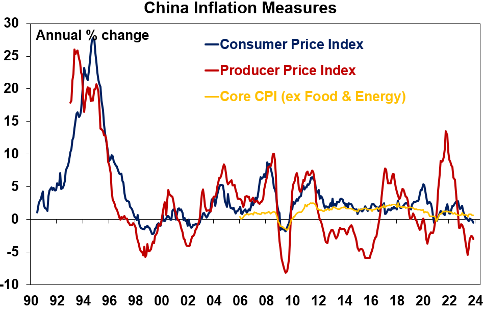 - China not rushing into a big fiscal stimulus. The Central Economic Work Conference maintained a pro-growth tone but with a focus on quality growth. On the data front, Chinese activity indicators for November were mixed with industrial production and retail sales accelerating from a year ago due to base effects from last year’s lockdowns with production stronger than expected but retail sales weaker than expected, investment growth remaining subdued and property investment and sales still falling. Home prices are continuing to fall and credit was weaker than expected but annual credit growth accelerated to 9.4%yoy, from 9.30%.