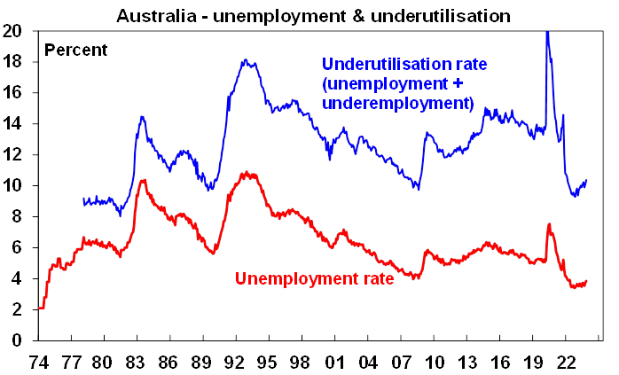 - Still rising unemployment. Jobs growth was way stronger than expected in November, but against this unemployment and underemployment rose on the back of a record participation rate and are continuing to gradually trend up, hours worked were flat and have been trending down over the last six months all of which suggests softness.