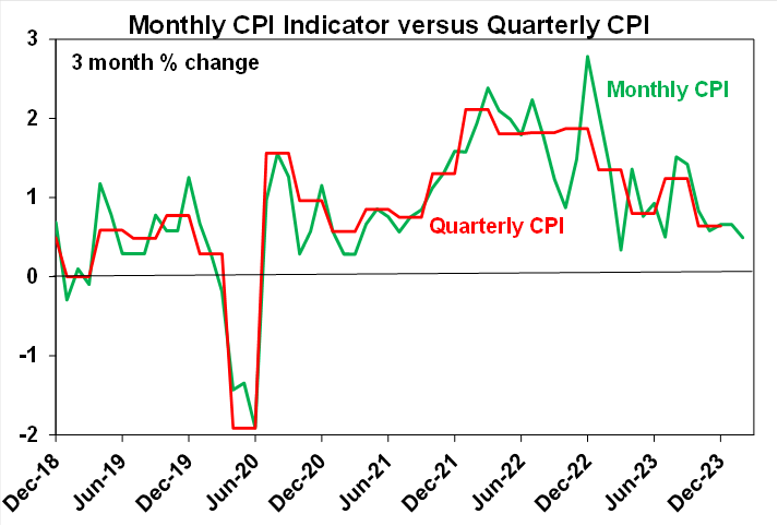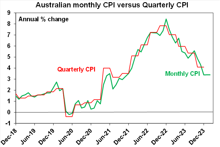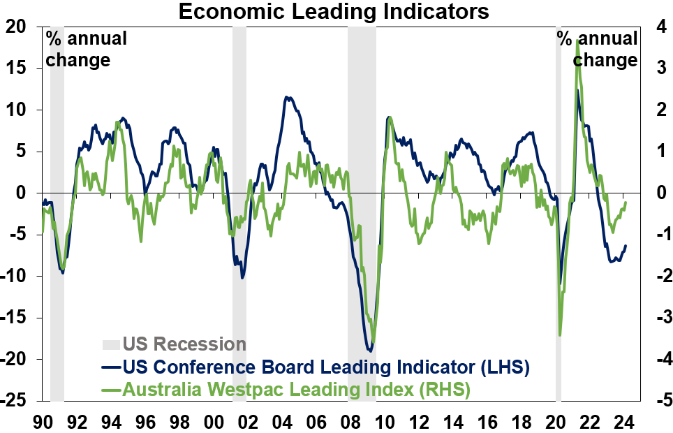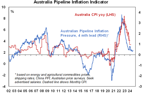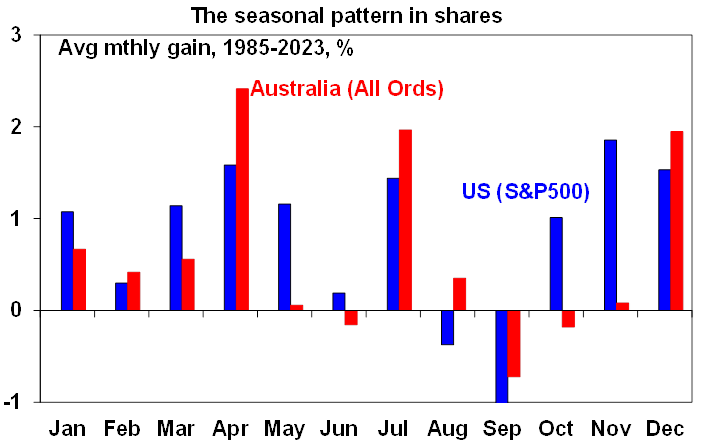 Developments in the global investment markets Stock Watch by Shane Oliver March 28, 2024 03:47 PM Investment markets and key developments over the past weekUS and European shares rose further over the past week helped by okay economic data and expectations for rate cuts this year. News from central bankers was mixed with Fed Governor Waller saying there is still no rush to cut rates (although he looks to be on the hawkish side at the Fed as not much has happened since last week’s meeting when the Fed was dovish), but ECB officials sounding dovish and the Swedish central bank flagging possible rate cuts in May or June. Japanese and Chinese shares fell for the week. Helped by the positive US lead and lower than expected local inflation, Australian shares rose around 1.6% for the week to a new record high led by health, energy, consumer staple and property shares. Bond yields fell slightly. Commodity prices were mixed with oil and copper up but iron ore down slightly, The $A rose slightly and $US fell slightly.After another strong month shares have had a very strong start to the year (with global shares up 9.8% and Australian shares up 3.9%) and with valuations stretched and investor sentiment high the risk of a share market correction remains high. But the economic news consistent with a Goldilocks scenario of continuing but cooler growth and falling inflation, with central banks remaining on track for rate cuts this year, is continuing to drive a rising trend in share markets which may keep any corrections mild. It’s also worth noting that the breadth of US share market gains has spiked (ie, the proportion of the market making new 52-week highs has risen) whereas major share market tops normally see months of falling breadth beforehand.And the month of April is amongst the strongest seasonally both in the US and particularly Australia.Source: Bloomberg, AMPAustralian inflation is continuing to surprise on the downside and is tracking below RBA forecasts. For the fifth month in a row monthly CPI inflation came in weaker than expected in February, with a monthly rise of just 0.2%mom and annual inflation unchanged at 3.4%yoy. While fuel and education costs rose sharply and housing costs continue to rise at a rapid rate this was offset in in the month by greater than expected weakness in costs for holiday travel (despite Swiftonomics boosting hotel prices in Sydney and Melbourne), utilities and many food items.Source: ABS, AMPTrimmed mean and services inflation ticked up slightly, but March quarter inflation looks on track to be just 0.5%qoq or so, which will drop annual inflation to 3.2%yoy, which is well below the RBA’s forecast for 3.5%yoy. And on a six-month annualised basis inflation will have been just 2.2%, ie below target. Source: ABS, AMPOur Australian Pipeline Inflation Indicator continues to point to a further fall ahead and in the September quarter we see inflation falling to just below 3%, 12 months ahead of the RBA’s forecasts.Source: Bloomberg, AMPThe continuing faster than expected fall in Australian inflation provides support for our view that the RBA will start to cut rates from June. However, in the interim the RBA is likely to remain cautious and the risk remains high that the combination of the economy still growing, the stronger than expected labour market, upside risks to wages growth (flowing from another large increase in aged care workers’ wages and the upcoming minimum and award wage cases), along with the revamped Stage 3 tax cuts will see the start of rate cuts pushed back to August or September.What happened to Swiftonomics? No big impact on inflation or retail sales. Taylor Swift’s Eras Tour was huge, and its impact can be seen in February inflation and retail sales data, but it was never going to be big enough to significantly boost the economy or lead to higher interest rates. Our estimate was that it would amount to just 0.02% of Australian GDP. So, as we have seen, both inflation and retail sales actually came in weaker than expected in February as Swiftonomics was swamped by other factors. And now we have to live with the hangover as the Swift lift was temporary.Bad Easter news - get ready for surging chocolate prices! But don’t expect a big impact on inflation. Over the last year the price of cocoa has surged more than three-fold due to supply disruptions in Africa associated El Nino (hot dry weather and then flooding rains), pests and rising pesticide costs. As the basic ingredient in chocolate, it means higher chocolate prices although the full impact will take a while to show as many chocolate producers have long dated agreed price contracts for cocoa. That said it might be an idea to switch to carob for a while (although sugar prices are up too so it may also be affected). I am more a savoury person (Arnotts’ Shapes are my favourite) so I am not too fussed by higher chocolate prices. I hear savoury is also a healthier snack option than sweet. That said I doubt the coming surge in chocolate prices will have a significant impact on CPI inflation – chocolate has a very low weight in the Australian CPI (its only a portion of “snacks and confectionary” which has a total weight of just 0.89% in the CPI).But won’t another big increase in Australian minimum and award wages just add to inflation? Sure, it’s a risk given the influencing effect they have on other wages, particularly if the Fair Work Commission grants unions’ request for a 5% rise coming on the back of last year’s 8.65% and 5.75% rises respectively for minimum and award wages. But if its in line with inflation (say 3.5-4%) as the Government appears to be supporting its unlikely to have an inflation threatening effect on wages growth and would be consistent with both slowing down this year.I may not be a heavy metal sort of guy (more pop) but I know a good heavy metal band when I hear one and ACDC is about the best. Its now 50 years ago since Bon Scott joined ACDC and 