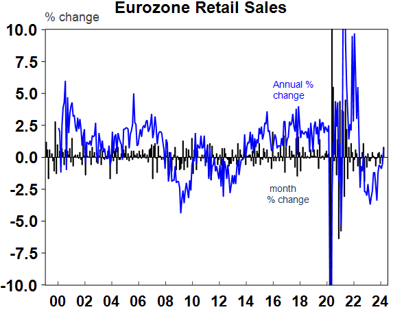 Eurozone retail sales are showing signs of perking up.
