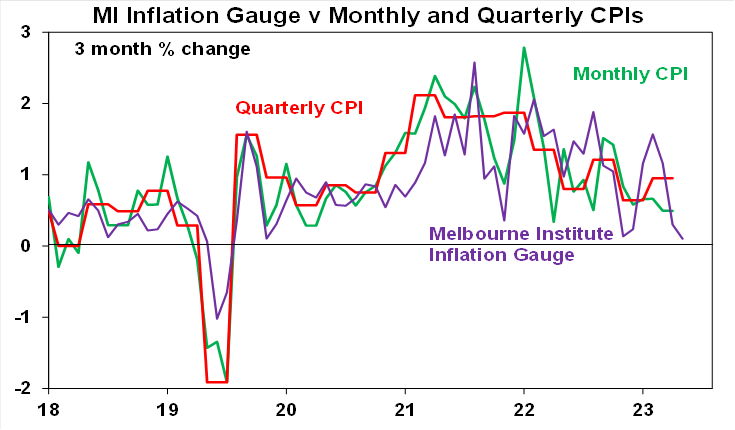 The Melbourne Institute’s Inflation Gauge points to a renewed slowing in CPI inflation in April. According to the Gauge inflation was 0.1%mom slowing to 3.7%yoy with its trimmed mean slowing to 3.2%yoy. But the cooling pace of monthly inflation in the Gauge and in its trimmed mean point a slowing in inflation in April.