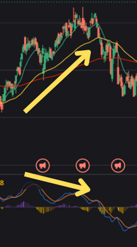 Divergence occurs when the price movement of the stock ‘disagrees’ with the movement of the MACD. For example, if the stock is making higher highs but the MACD is making lower highs, it could signal a potential reversal in the uptrend. And vice versa if you’re looking for an entry.