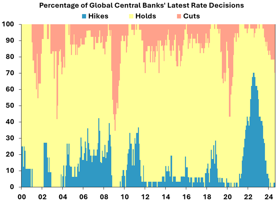 The good news though is that the drum beat of global rate cuts continues with nearly a third of global central banks now cutting rates.