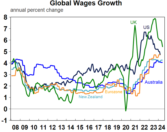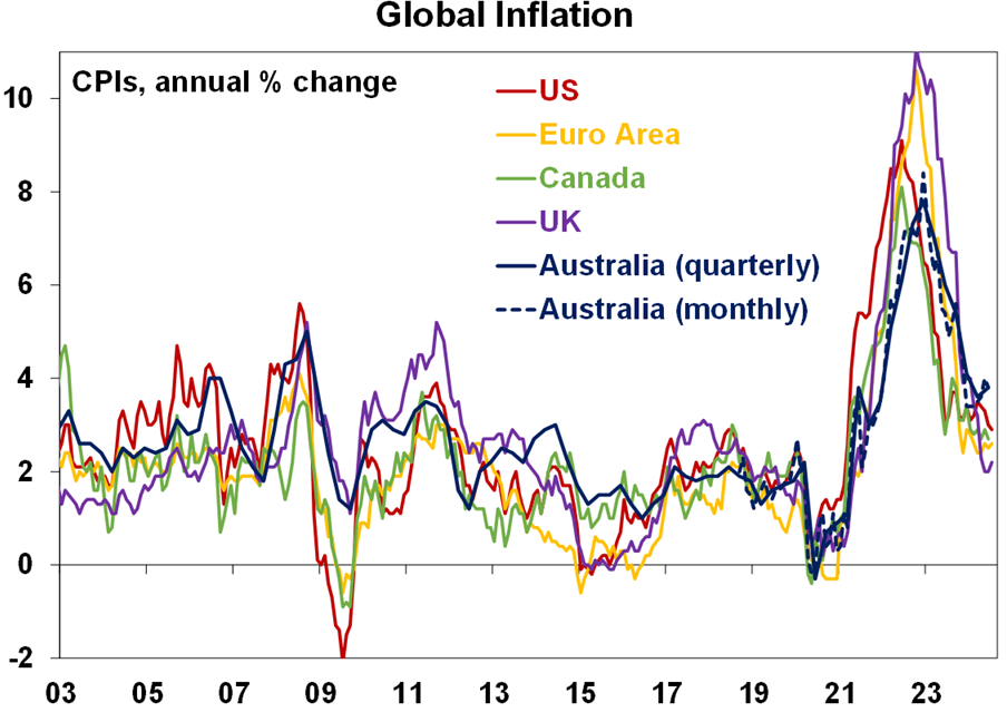 None of this means that the RBA will automatically follow. But just as Australia followed global inflation and rates up in 2022 – despite some saying we wouldn’t because we were different – it’s likely to follow on the way down in the next six months. Yes, disinflation stalled in the June quarter, but it did in the US in the March quarter too. And underlying economic variables are not that different to many countries that are now starting to cut rates – eg, unemployment is similar to that in the US and UK and wages growth has been lower than in the US, UK, Canada and New Zealand. So, while Governor Bullock in Parliamentary testimony reiterated the message that the RBA “does not expect that it will be in a position to cut rates in the near term”, we continue to see it starting to cut in February on the back of slower growth, higher unemployment and lower inflation than its currently forecasting.