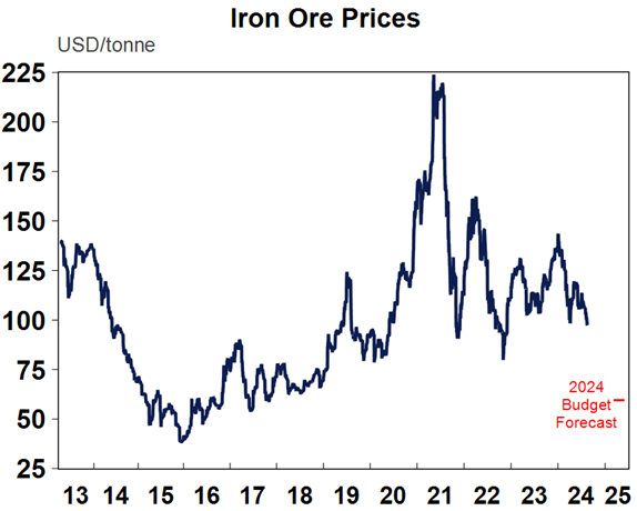 Falling iron ore price reducing the odds of another budget surplus. Over the last two years the Government has been a beneficiary of windfall revenue gains driving budget surpluses. A big part of this was higher than expected iron ore prices. This is now under threat again with the iron ore price falling again on the back of worries about Chinese demand in the face of weaker growth and stockpiles. So far the iron ore price is still well above the Budget assumption of a fall to $US65 a tonne by March quarter next year. But it still faces more short-term downside risks and the lower it is the less the windfall tax revenue going to Canberra, making it unlikely the Government will see another “surprise” Budget surplus this year and removing the Government’s key defence against arguments that its adding to inflation.