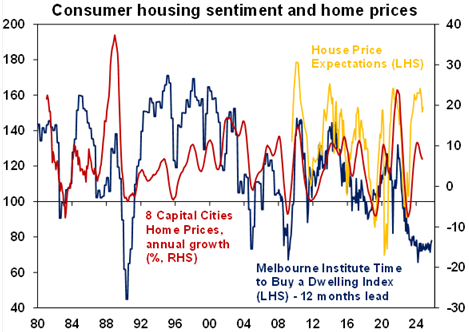 The October Westpac/MI consumer survey showed continuing high expectations for home price growth and a slight lift in perceptions of whether now is a good “time to buy a dwelling”, although it remains very weak.
