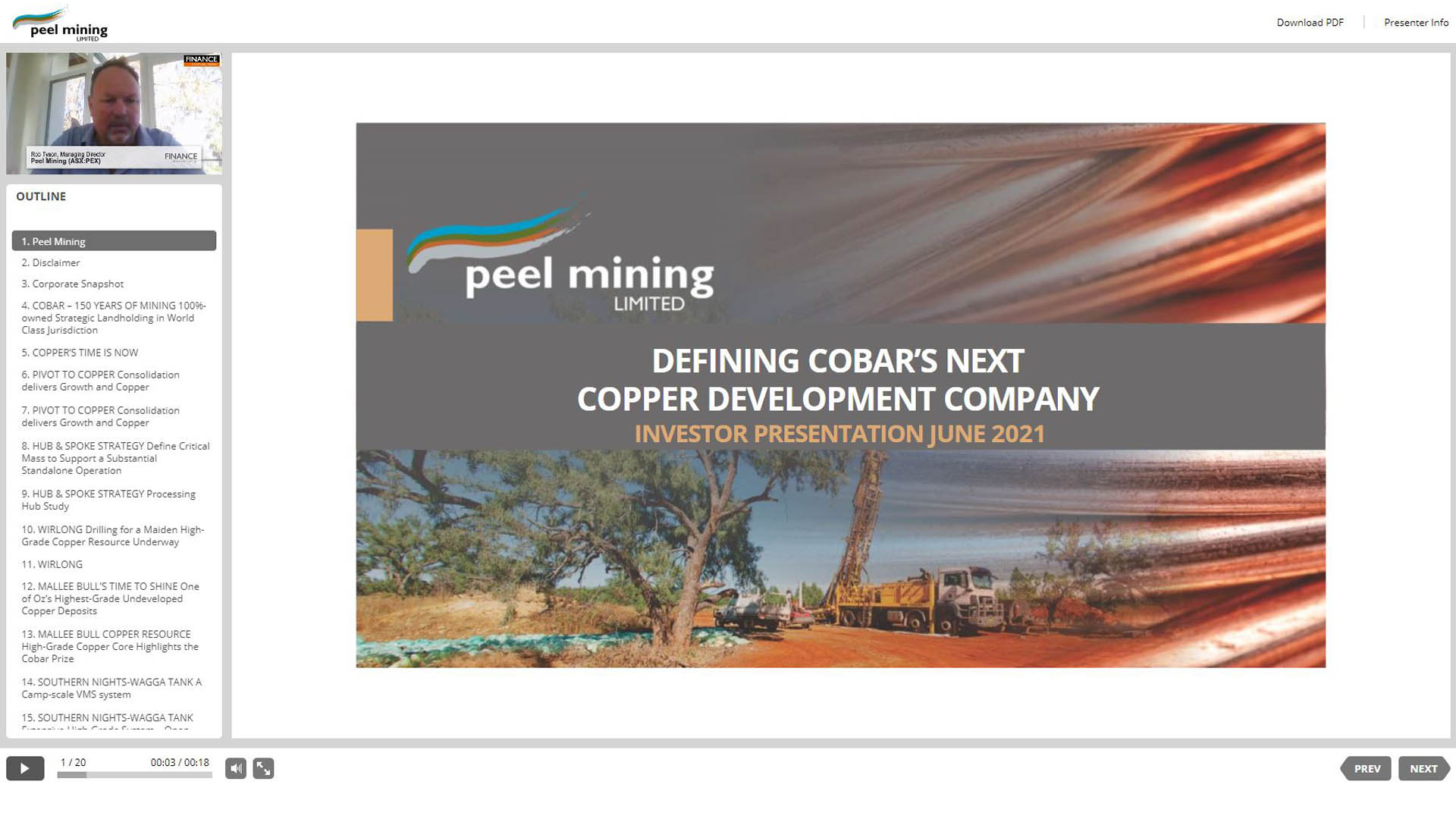 08 Jun 2021 - Peel Mining Limited (ASX:PEX) Managing Director Rob Tyson talks about the company's projects in the Cobar Superbasin of western NSW, drill results at Wirlong and Mall…
