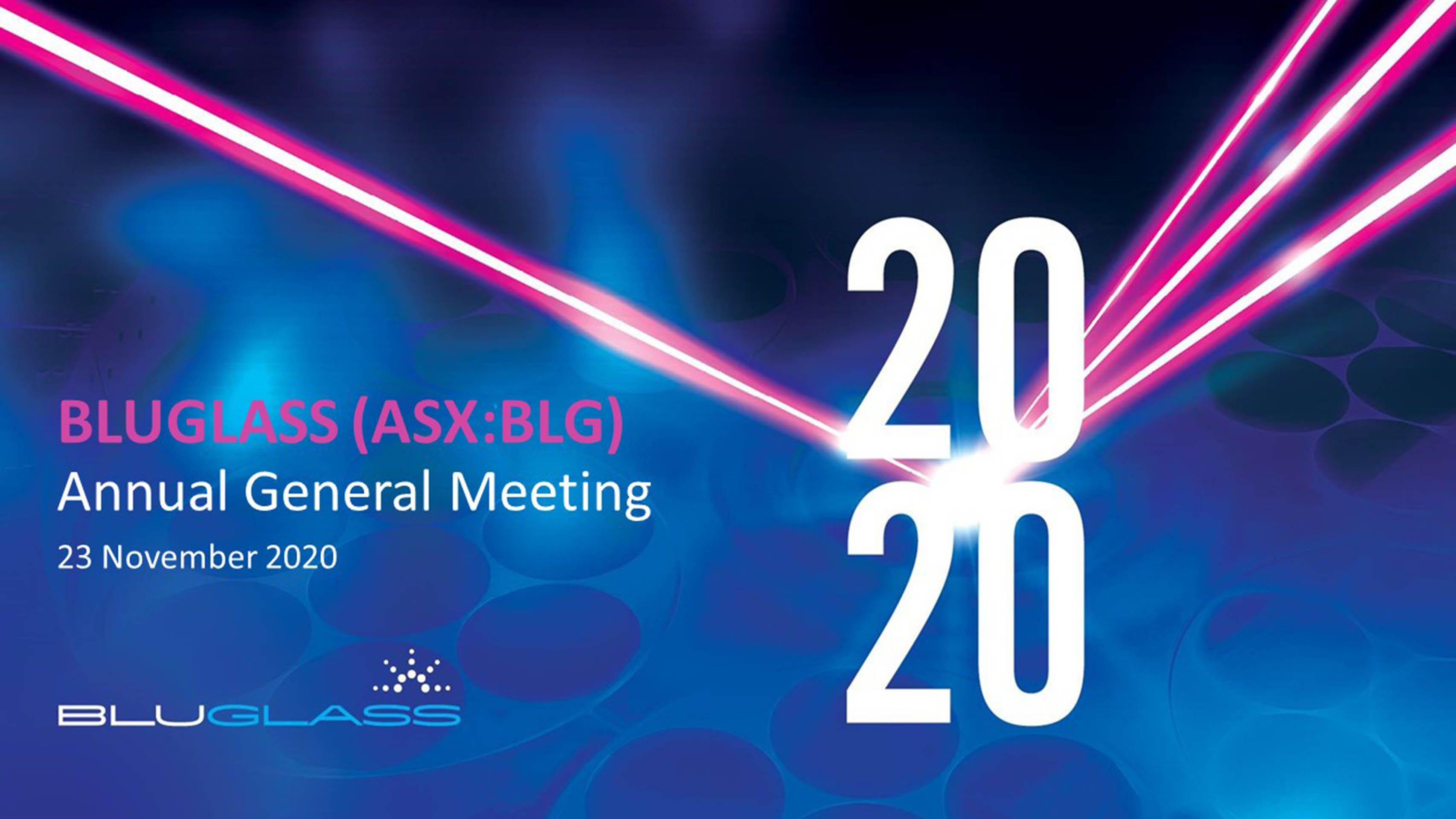 26 Nov 2020 - BluGlass Limited (ASX:BLG) 2020 Annual General Meeting with Non-Executive Chairman James Walker, Managing Director and CEO Giles Bourne and Chief Technology and Opera…