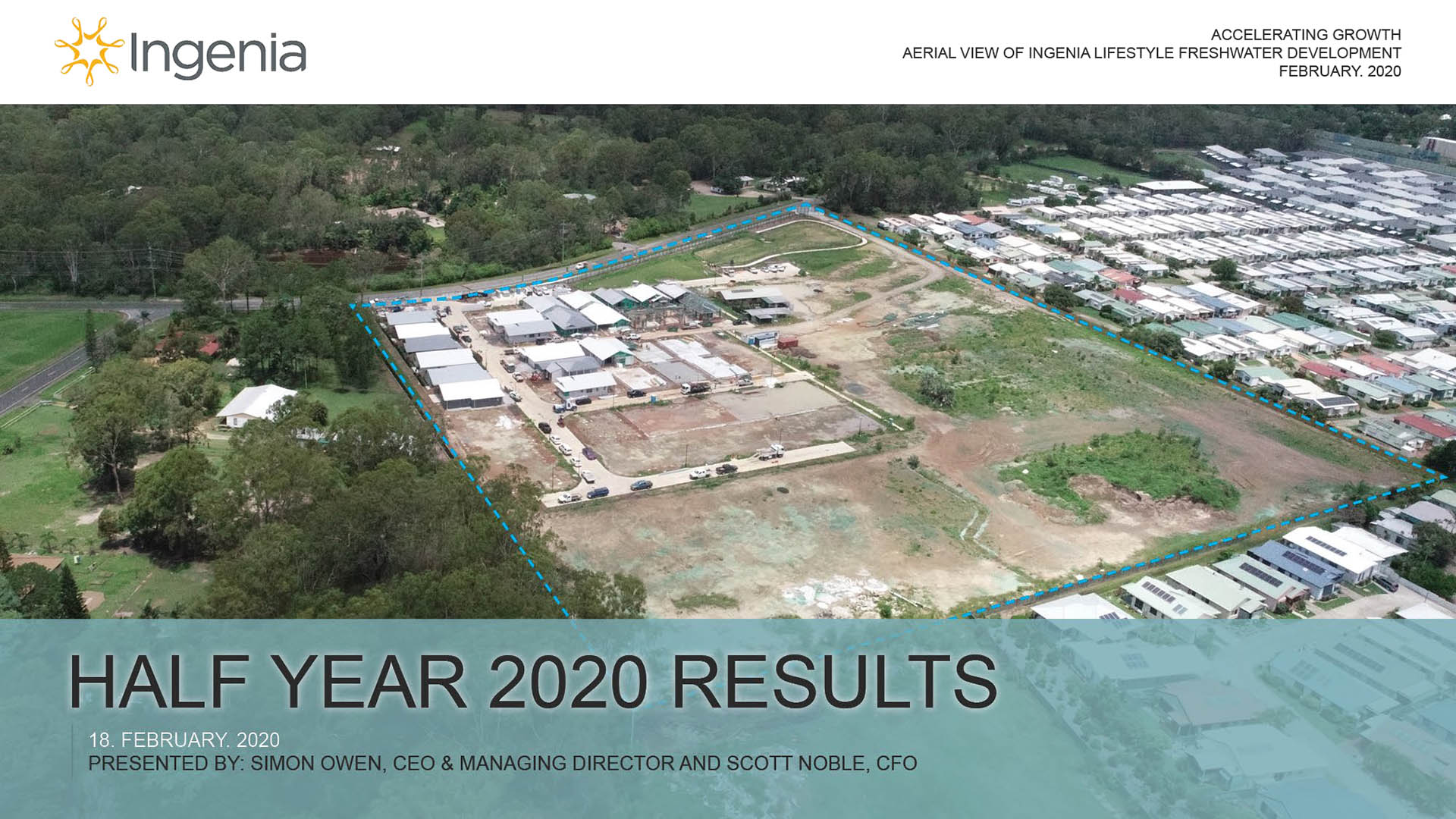 18 Feb 2020 - Ingenia Communities Group Limited (ASX:INA) Managing Director & CEO Simon Owen and CFO Scott Noble present the company's half year 2020 results.