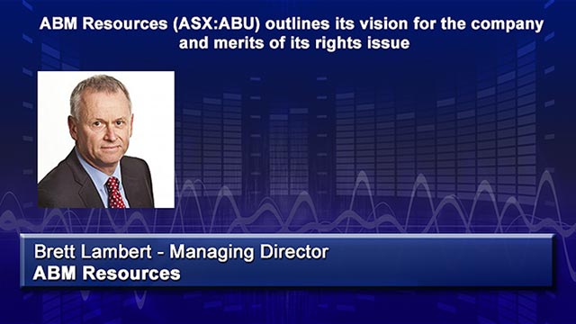 02 May 2016 - ABM Resources (ASX:ABU), Managing Director Brett Lambert outlines its vision for the company and merits of its rights issue.