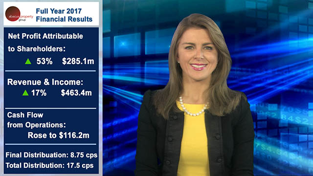 18 Aug 2017 - Abacus Property Group (ASX:ABP) has reported record 2017 financial year results, with its net profit attributable to shareholders rising 53 per cent to $285.1 million…