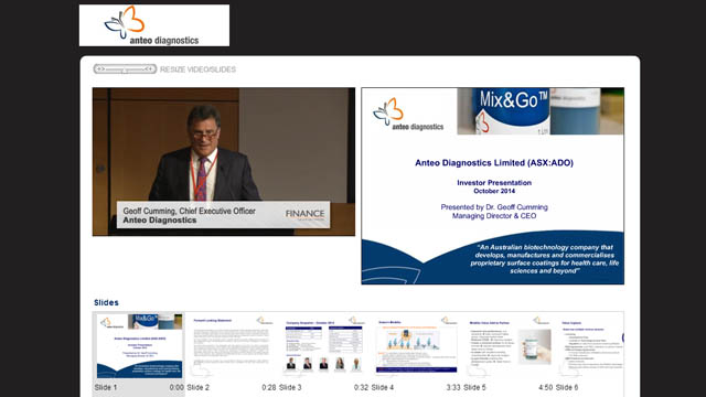 21 Oct 2014 - Anteo Diagnostics Limited (ASX:ADO) CEO Dr Geoffrey Cumming presents at the ASX Investor Series in Sydney.