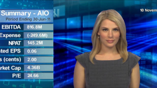 24 Oct 2011 - Aus sharemarket gains at midday. Asciano Limited's (ASX:AIO) refinanced its $1.44 billion debt facilities at a lower interest rate and with less banks.