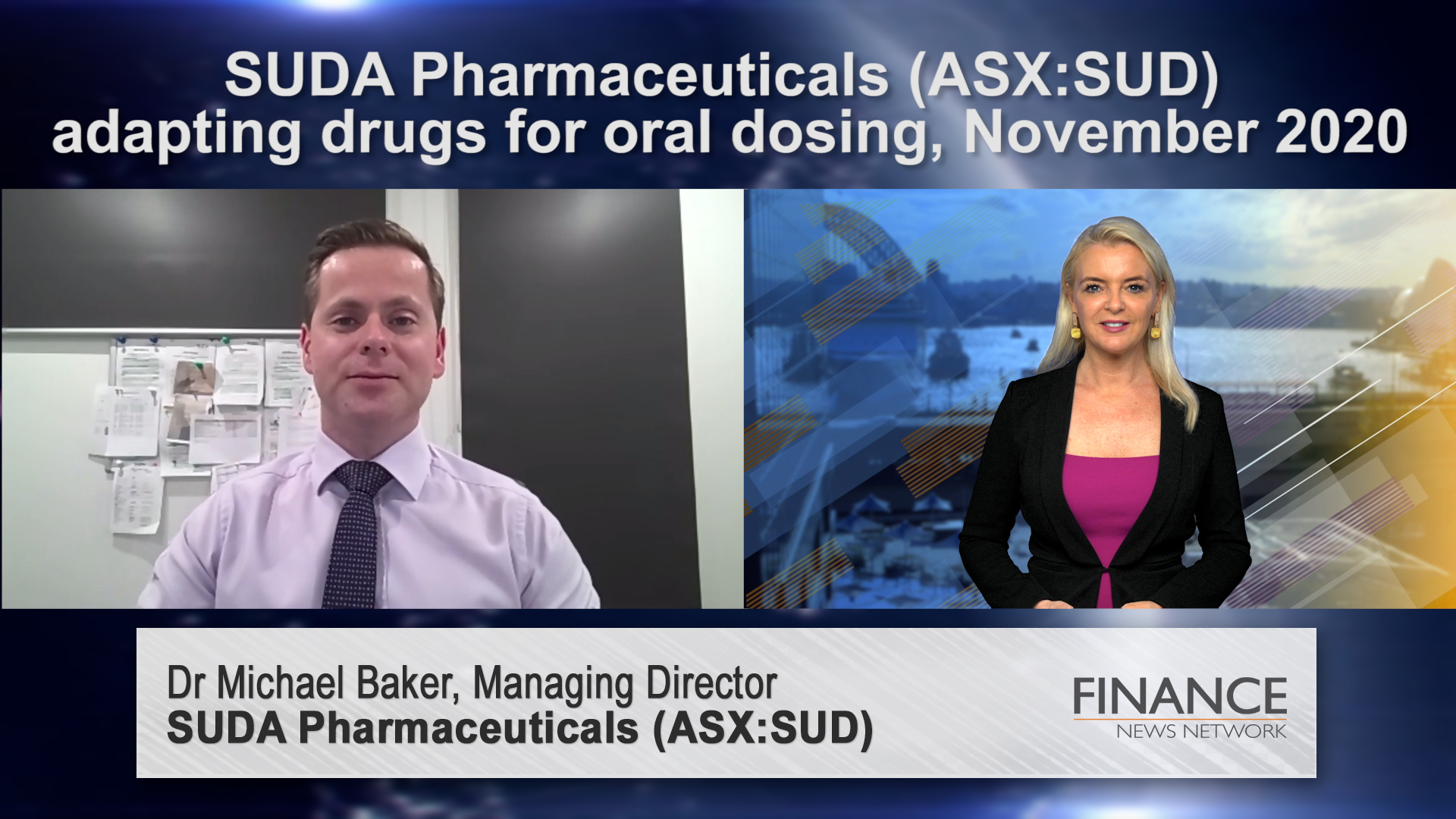 24 Nov 2020 - SUDA Pharmaceuticals Limited (ASX:SUD) Managing Director Dr Michael Baker discusses the company's technology to convert solid dose drugs into oral sprays and the outl…