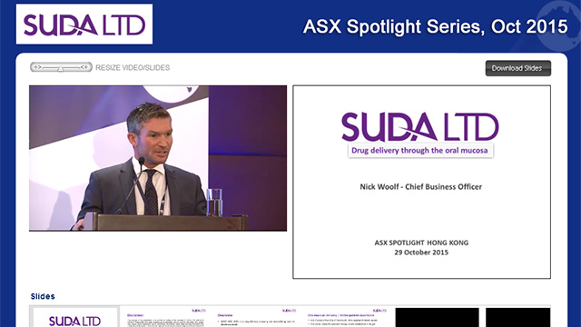 13 Nov 2015 - Suda Limited, (ASX: SUD) Chief Business Officer, Nick Woolfe presents at the ASX Spotlight Series in Hong Kong. goes here