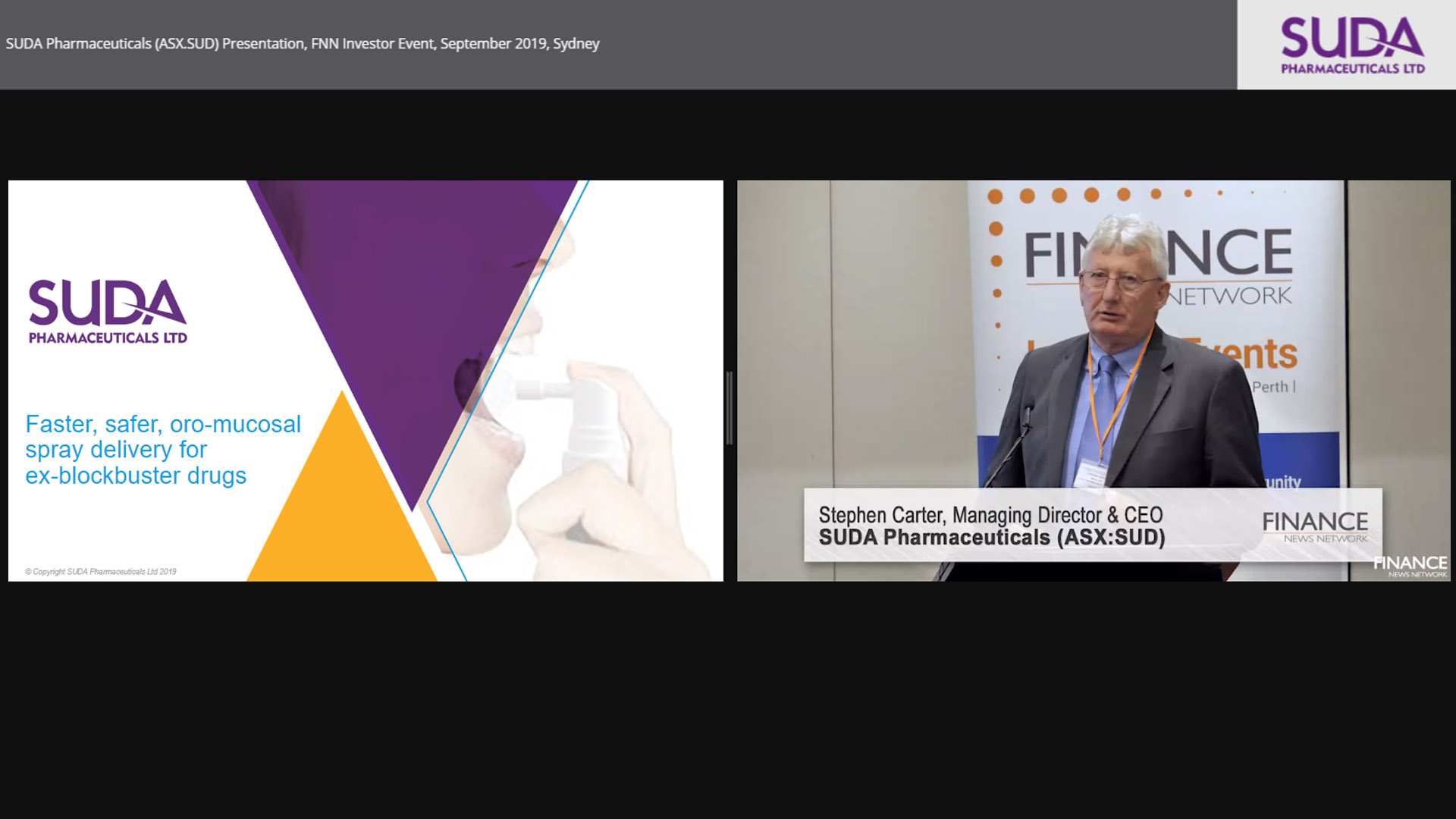 23 Sep 2019 - SUDA Pharmaceuticals Limited (ASX:SUD) Managing Director and CEO, Stephen Carter presents on the company's portfolio and the benefits of reformulating and delivering …