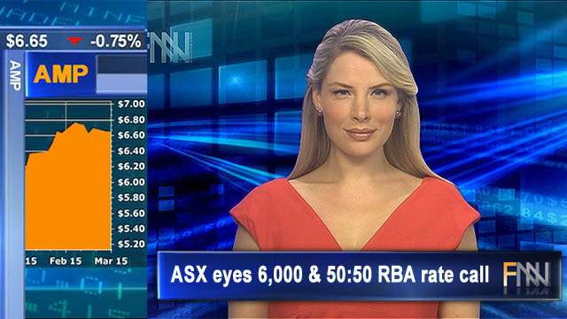 03 Mar 2015 - ASX eyes 6,000 & 50:50 RBA rate call. AMP Limited (ASX:AMP) and National Australia Bank Limited (ASX:NAB) predict where the key cash rate will move today.
