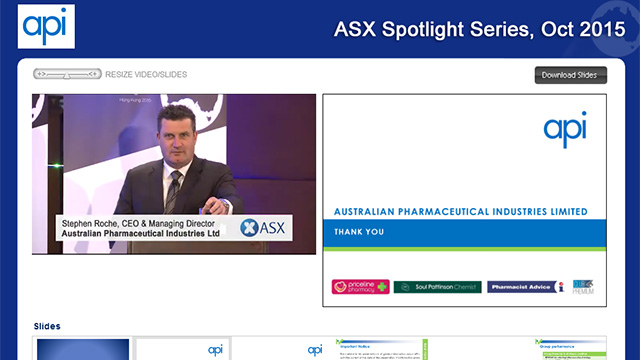 17 Mar 2016 -Australian Pharmaceutical Industries Limited (ASX:API) CEO and Managing Director, Stephen Roche latest financial results and market opportunities at the ASX Spotlight …