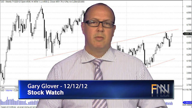 12 Dec 2012 - Investment advisor Gary Glover takes a technical look at S&P/ASX200, S&P/ASX Materials, Dow Jones, FTSE, AMP, ASX, QBE, RIO, AGO, FMG, BHP.
