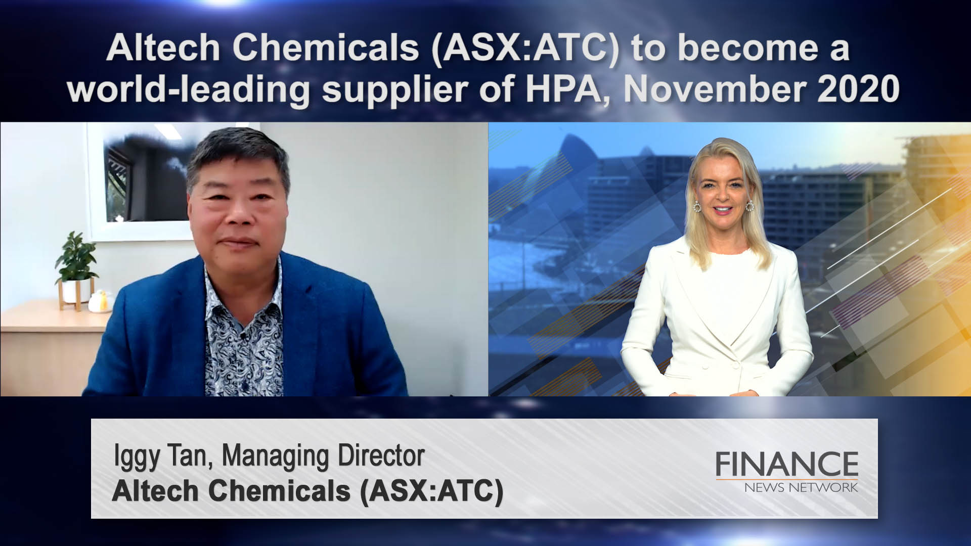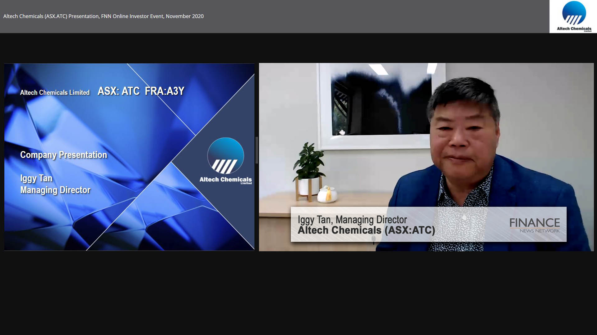 10 Dec 2018 - Altech Chemicals Limited (ASX:ATC) Managing Director, Iggy Tan discusses progress on the company's high purity alumina plant in Malaysia at FNN's Investor Event.