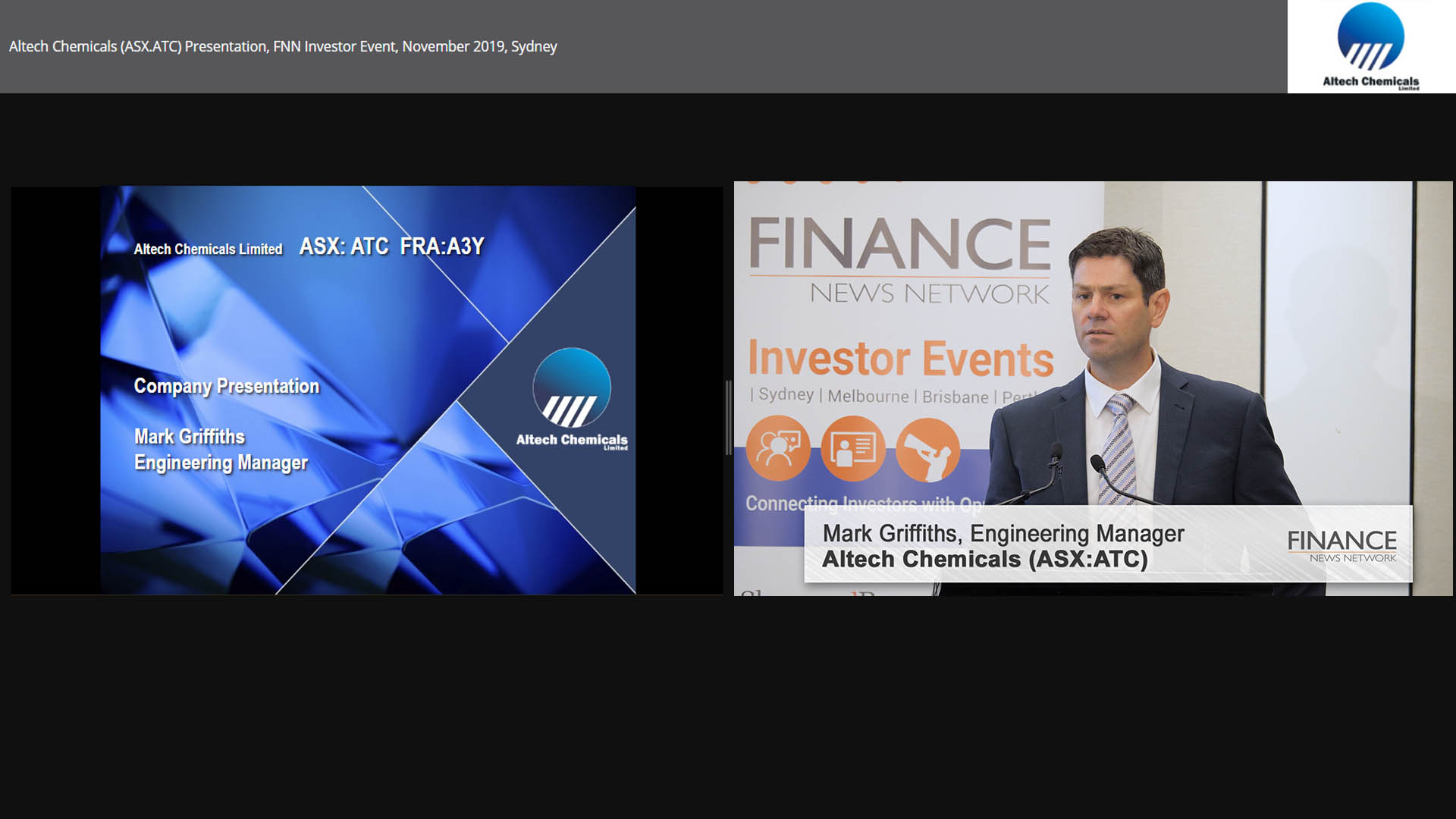 04 Dec 2019 - Altech Chemicals Limited (ASX:ATC) Engineering Manager Mark Griffiths presents on progress with the company's HPA (High Purity Alumina) plant in Malaysia, demand proj…