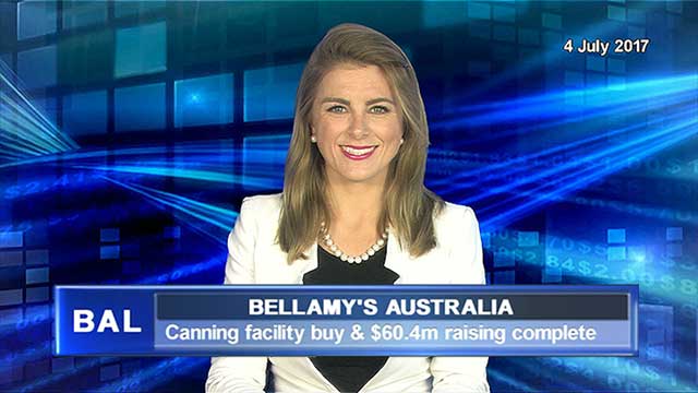 04 Jul 2017 - Bellamy’s Australia (ASX:BAL) has completed its 90 per cent purchase of a canning facility in Victoria, while it also finalising a $60.4 million capital raising.