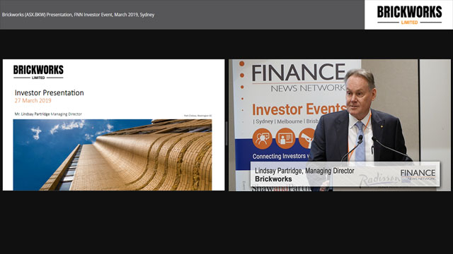 01 Apr 2019 - Brickworks Limited (ASX:BKW) Managing Director, Lindsay Partridge talks 1H19 results, the company's move into the US housing market via its acquisition of US brick ma…