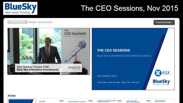 18 Nov 2015 - Blue Sky Alternative Investments Ltd (ASX:BLA) Managing Director, Mark Sowerby discusses the business of investing in alternative assets and its growth plans.