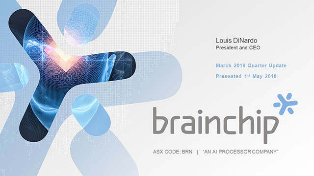 02 Feb 2018 - BrainChip Holdings Limited (ASX:BRN) CEO, Louis DiNardo, provides a Dec Qtr 2017 update covering sales and licensing, new hires and AKIDA development.