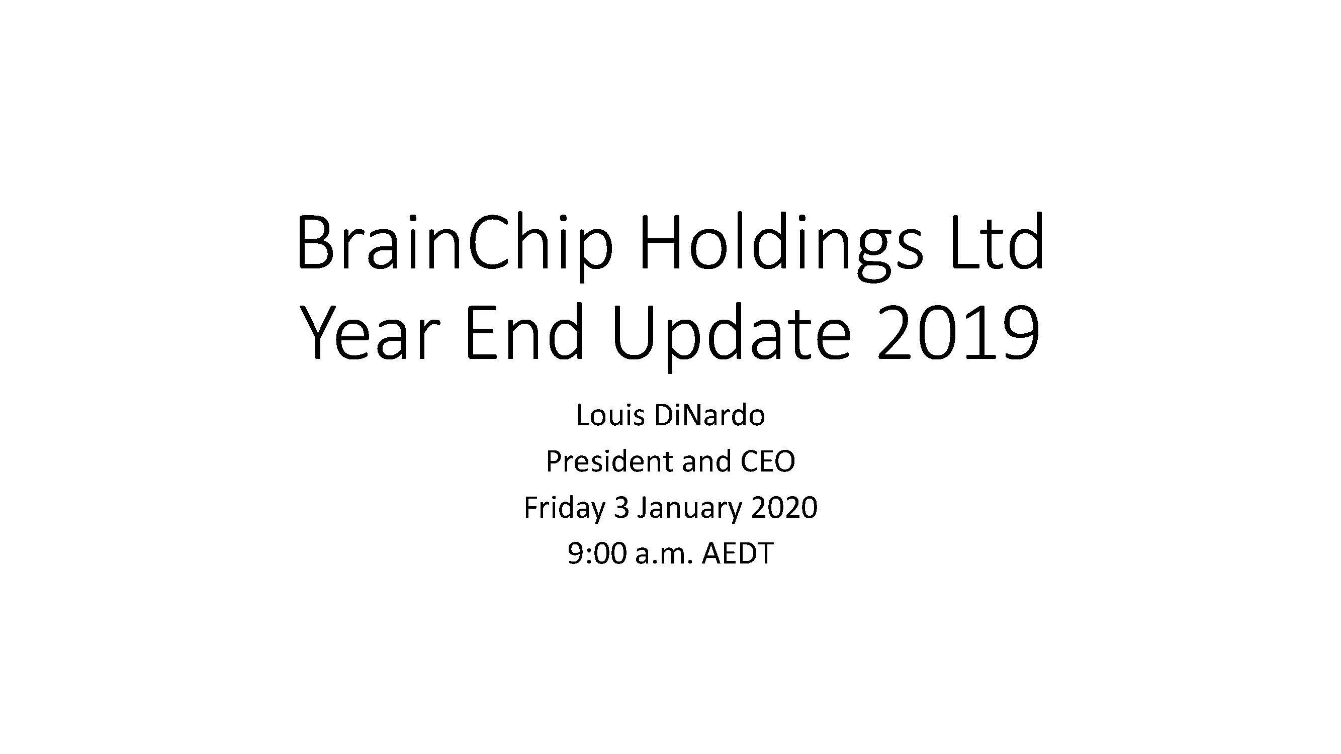 04 Apr 2018 - BrainChip Holdings Limited (ASX:BRN) President and CEO, Louis DiNardo gives a year-end update on the company's accelerated artificial intelligence and machine learnin…