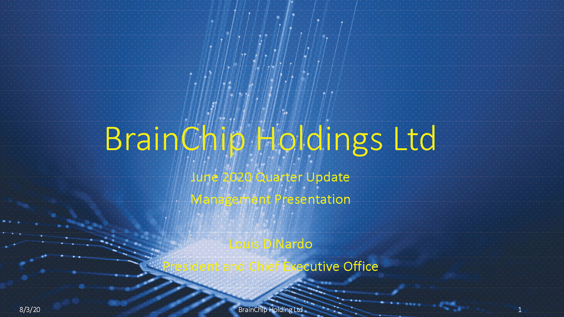 10 Aug 2020 - BrainChip Holdings (ASX:BRN) President & CEO Lou DiNardo presents the June quarter update on the the company's product and business development timeline and financial…