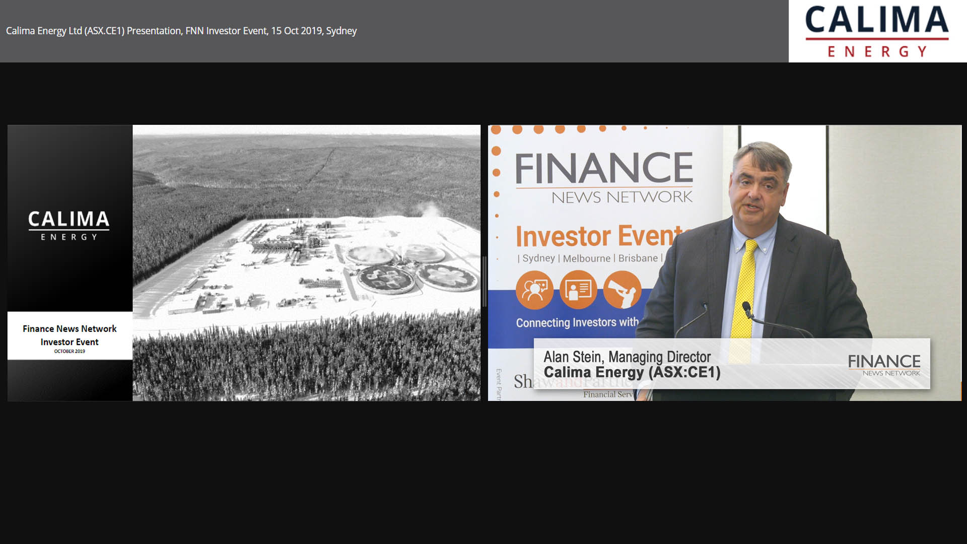 18 Oct 2019 - Calima Energy Limited (ASX:CE1) Managing Director, Alan Stein, presents on results from the 3 well drill program at the Montney project, strategy and recent capital r…