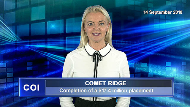 14 Sep 2018 - Energy company Comet Ridge (ASX:COI) is pleased to announce the successful completion of a $17.4 million placement at an issue price of $0.34 per share.